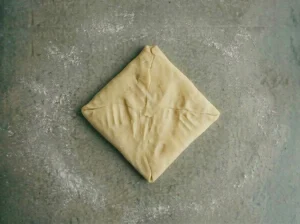 - Fold dough corners over butter to fully encase; pinch seams closed.