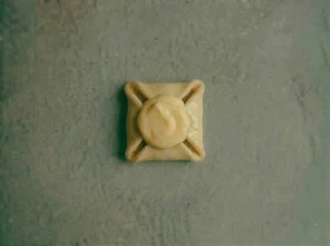 - Place cold butter between parchment sheets. Pound/roll into a square about 6×6 inches (15×15 cm).