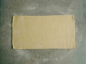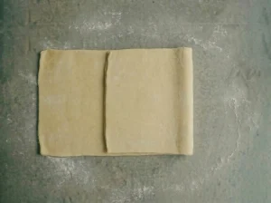 - Turn 1: Roll to a long rectangle (~12×24 inches / 30×60 cm). Brush off flour. Fold into thirds (letter fold). Wrap and chill 15–30 minutes. (Layers: 3)